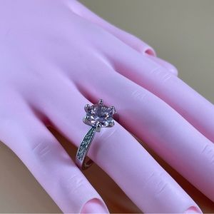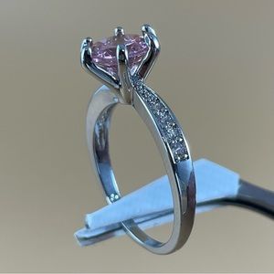 Pink CZ Diamond Round Cut Solitaire Silver Plated Ring