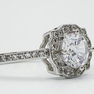 💝Beautiful Round Shiny CZ Diamond Flower Micro Pave Wedding Ring, UNVN12316