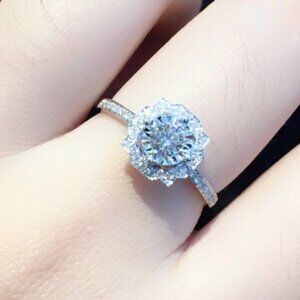 ✨Beautiful Round Shiny CZ Diamond Flower Micro Pave Wedding Ring, UNVN12316