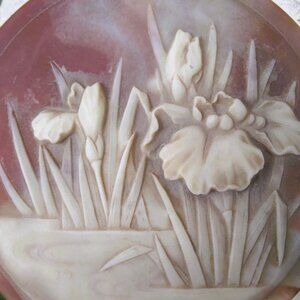 Beautiful Round Vintage Incolay Stone Carved Irises/Orchids Trinket/Jewelry Box