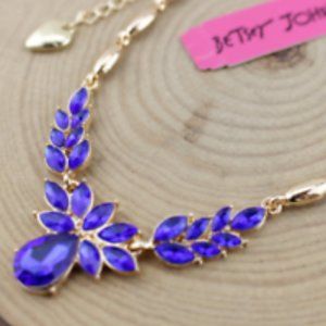 Beautiful Royal Sapphire Blue Rhinestone Antique Gold Necklace Earring Set