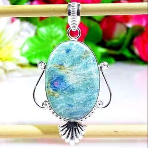 Beautiful Ruby Fuchsite Gemstone Pendant 2.5" with Silver Overlay.