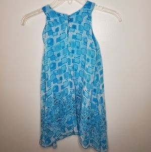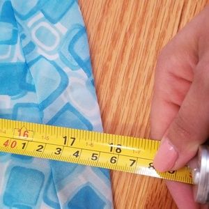 Beautiful blue top sure to tie into anyone wardrobe perfectly. You can't see it that well in the picture but near the collar it has a ruffled bow that ties in subtly but elegantly It has been lightly worn and I will iron either upon request or if needed before I ship it out, just let me know what you choose. The second picture is a measurement of the length and the third picture is a measurement of the width. The final picture is of the back of the top. Made in China.