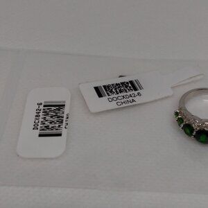 Russian chrome diopside, with genuine cambodian white zircons, and anti-tarnish rhodium plated 925 silver, size 6, this ring is very comfortable, the stones are beautiful! Stamped and comes in box with tags!