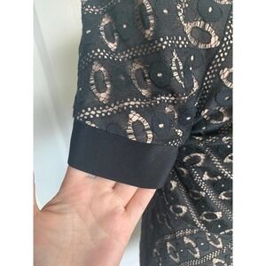Beautiful SEA NEW YORK Dress 6, EUC! Stunning beige shell with black lace overlay and beautiful black banded sleeves. Lace design is eye catching. Mid back zip with black hardwear. Silk and polyester.