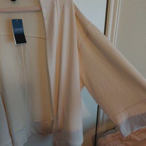 This open front shrug cardigan is EXTREMELY Soft!! Like one of the softest tops I've touched. It is made by Ralph Lauren and retailler for 125.00. Super comfy and great pièce to throw over any tank. It says xl maybe for a oversized cardigan but I feel it fils better as a 2x or 3x for sure! Very roomy.