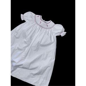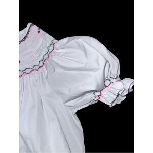 Beautiful SWEET ANGELA Rosalina WHITE Twill SMOCKED candy PUFF SLEEVE Dress smocked dress size 7 Youth Great Condition