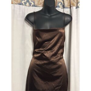 Beautiful Salty SIZE LARGE Satin brown Cinch Mini Dress Cowl neck, adjustable crisscross back straps. GOOD CONDITION