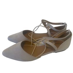 Beautiful Sand Colored Suede Pointed Toe Lace Up Flats in Ladies Size 8.