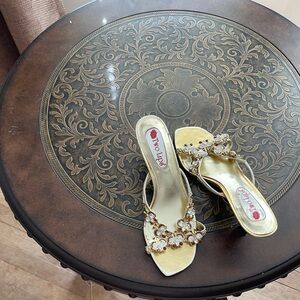 Beautiful used e wear and tear Two Lip sandal with rhinestones. Great for the summer days.