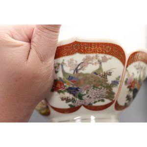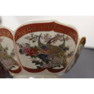 Beautiful Satsuma Japan Lotus Bowl. Peacocks flowers gold trim. Intricate Asian