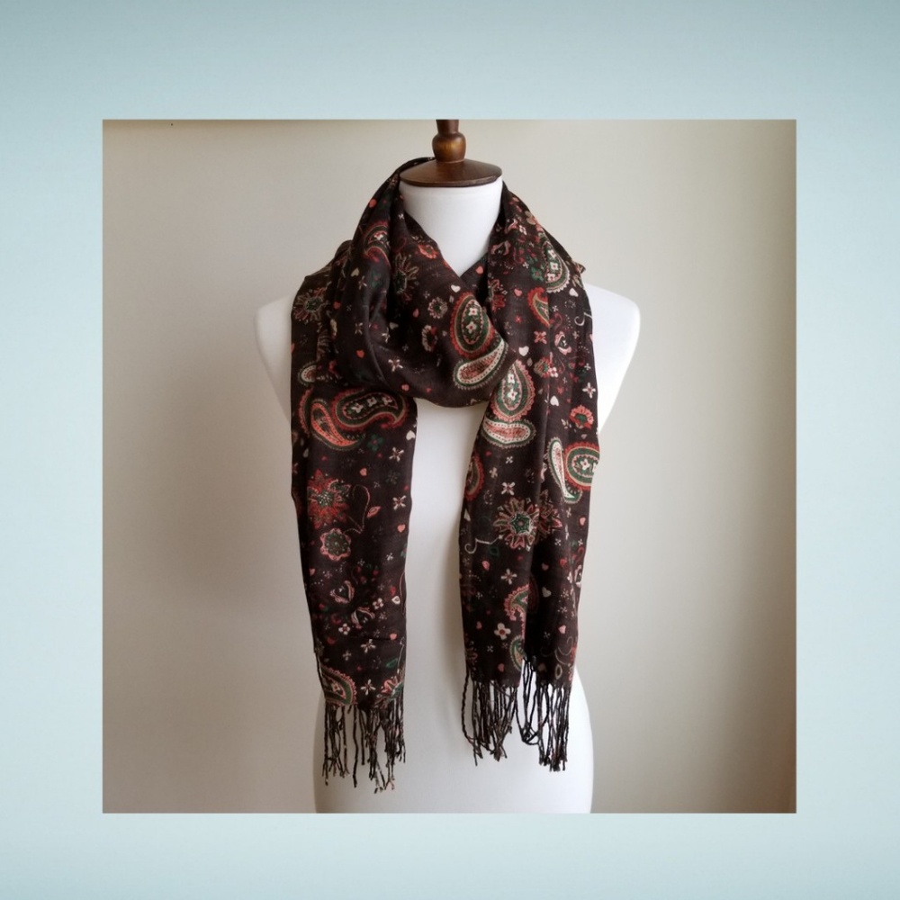 Lightweight acrylic scarf. More for fashion than warmth. Very gently used with no flaws.