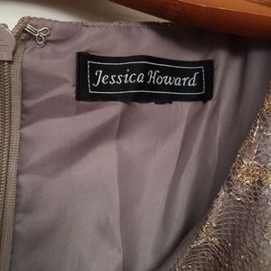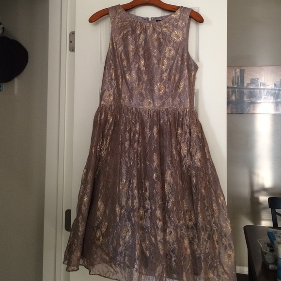 Light brown lace dress with gold accent. Crinoline liner. Only worn once. Perfect for a dance or other formal occasion.