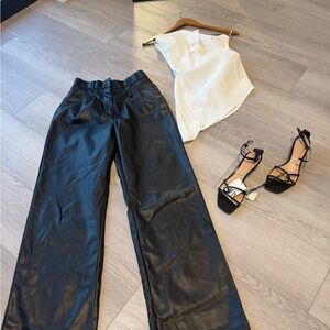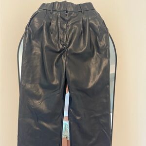 Abercrombie Pants Black faux leather wide-leg pants, trendy and versatile.