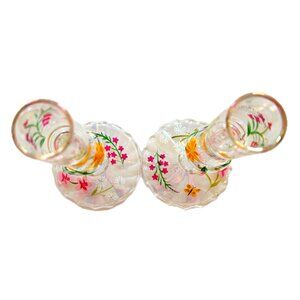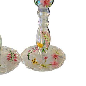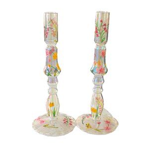 Anthropologie Floral Glass Taper Candle Holders Hand Painted Anthro Home