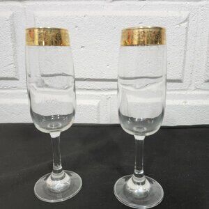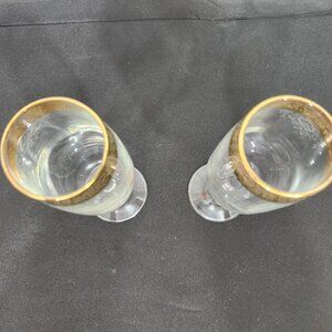 Beautiful Set of 2 Vintage 24K Gold encrusted Cellini Champagne Flutes