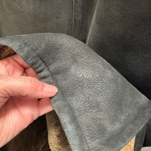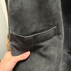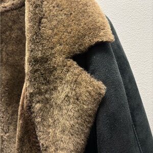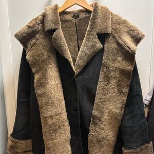 Beautiful full length black Shearling coat with detachable removable hood. See photos for details. This coat is absolutely gorgeous light and weight. Size large, would say it would fit a max size 14, this was my coat. Length 52 inches, shoulder to shoulder seem 17 inches, under arm to under arm is 22 inches. Please ask any questions and look at all my other beautiful things for sale.