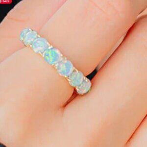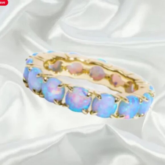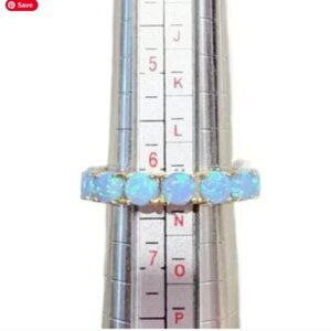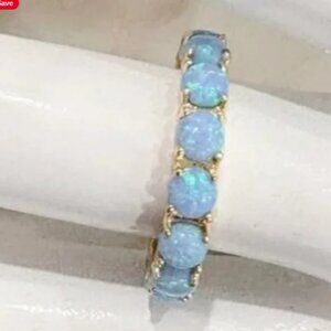 Beautiful Shimmering Lab Created Blue Opal Ring Band sz 6