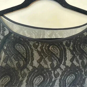 Beautiful short sleeve black lace top with lining. Easy to dress up with slacks or dress down with jeans.