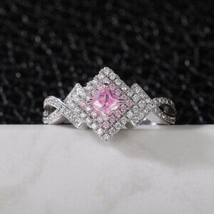💥Beautiful Pure Pink Double Layer Weave Princess Cut CZ Ring, K832