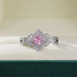 🔥Beautiful Silver Pure Pink Double Layer Weave Princess Cut CZ Ring, K832