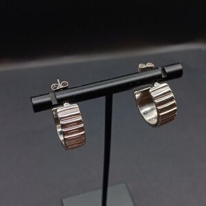 Beautiful Silver Ribbed Half Hooped Earrings. Great Pre-Owned Condition