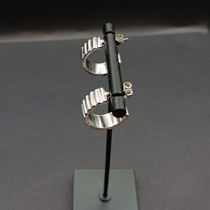 Beautiful Silver Tone Ribbed Half Hooped Earrings Non-Magnetic,
