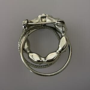 This beautiful silver tone double wreath brooch with blue marquis cut rhinestones is a vintage piece that exudes elegance and beauty. The intricate design featuring round-shaped rhinestones in a vibrant blue color adds a touch of glamour to any outfit, making it perfect for any occasion. With its intricate detailing and timeless appeal, this brooch is a must-have accessory for women looking to add a sophisticated touch to their fashion statement.