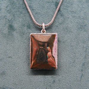 This is a Beautiful Piece. A Silver Tone Round Chain with a Green Tone/Marble Style Pendant set in a silver frame with a lobster closure.
