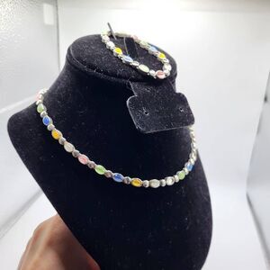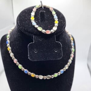 Beautiful Silver and Pastel Tiger's Eye Bracelet & Necklace Set