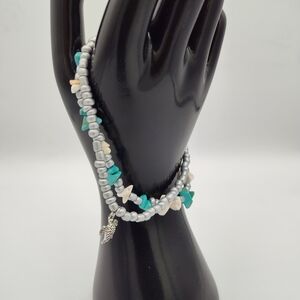 Beautiful Silver and Turquoise Beaded Bracelet With Silvertone Feather Charm