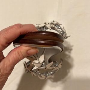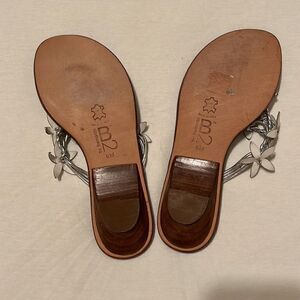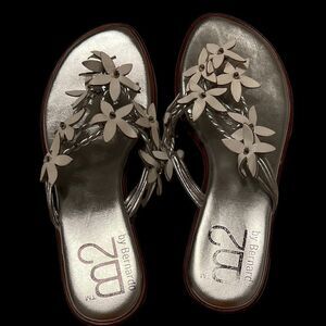 Beautiful Silver & white flowered leather sandals B2 by Bernardo worn 2x EUC