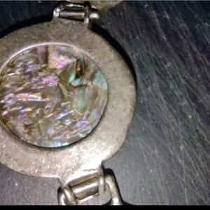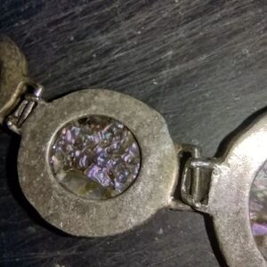 Beautiful Silver-Tone & Large Choker Necklace With MOP in Resin Look 15"+2"