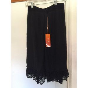 Beautiful Black Skirt with Golden Shimmer multi-color Flower Prints & Decorative Bowtie & Lace Rim