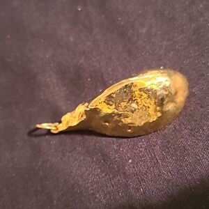 This lovely GEODE sparkles. The inside of the cavity is glistening, and the outside is a shiny bright gold tone. The color of the GEODE is between a light grey with a slight touch of purple.