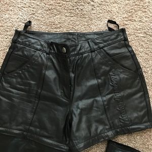 Beautiful Black Leather boot cut fully lined pants. The legs Zip Off and pants turn into shorts!!! Wear as pants for those cool mornings/nights and wear as shorts durning warm days. If you have the FXRG coat, these pants will zip to the back of the coat so no wind goes up your back! I'm only selling because I moved to Florida. These are awesome pants!!!
