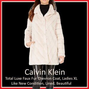 Beautiful. Soft Calvin Klein Chevron Faux Fur Coat, NWT/New Condition, Size XL