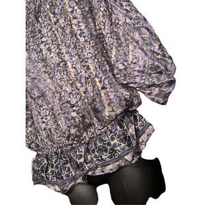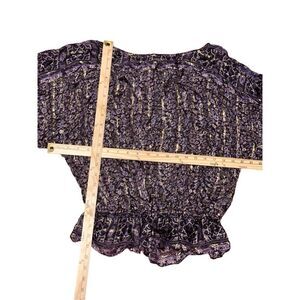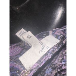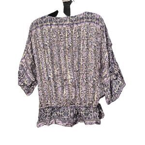 Beautiful Soft Joie Silk Top Womens Large Purple Floral Metallic Stripe Kimono Sleeve Peplum SIZE XS Great Condition