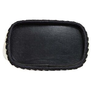 Beautiful condition! Very well-made. Looks brand new! This is a stiff tote not a soft, flimsy tote. It holds up very well. It is white with silver sparkly throughout the crocheting, with black crocheted trim and braided leather handles. Silvertone hardware. Very roomy inside! Very clean, from smoke/pet free home. Lined in black nylon, there is a zippered pocket inside and also inside the little pouch which has a zippered closure. The tote measures approx. 12"long x 10"high x 6"deep. Double leather handle has a drop of approx. 9 1/2". The pouch measures 7"long x 4"high. Both very nice! ALWAYS LOOK CLOSELY AT ALL PHOTOS IN CASE I MISSED SOMETHING BEFORE MAKING A PURCHASE. OFFERS ALWAYS WELCOME!