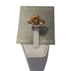 Beautiful Sparkly Silver Plated Rose Gold Tone Ring in Ladies Size 7