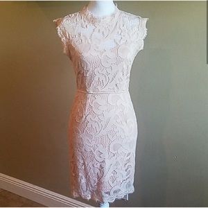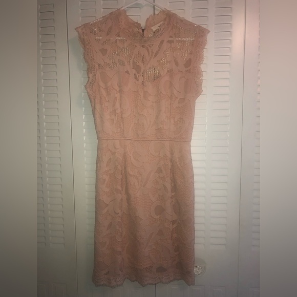 Beautiful blush colored lace dress. Zipper in back all the way down dress.