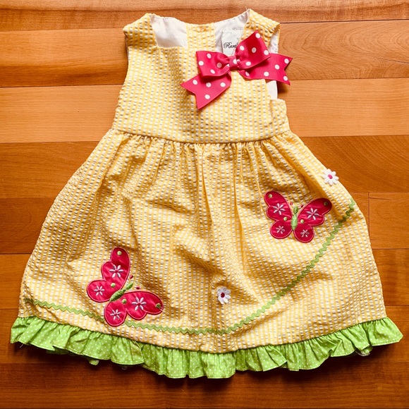 This dress is adorable for spring and summer! My daughter only wore this a couple of times. No stains - excellent condition.
