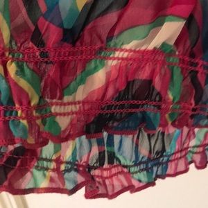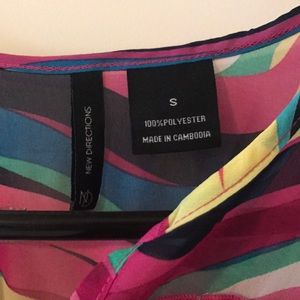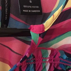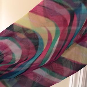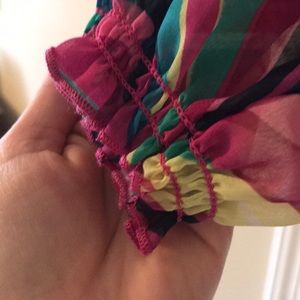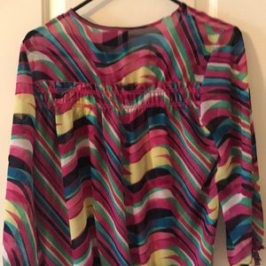 3 quarter sleeves, multicolor stripe pattern, adorable top! Sleeves and waist are stretchy elastic. Note: I cut off ties that used to hang from neckline and tried to show in next to last photo. EUC, non smoking