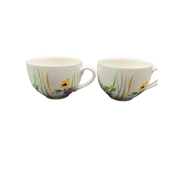 Beautiful Springtime Flower Raised Design Coffee Mugs Set of 2