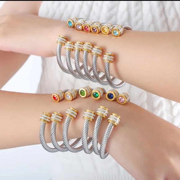 Beautiful Stainless Steel 2 Tone Cuff Bracelets with CZs in Various Colors