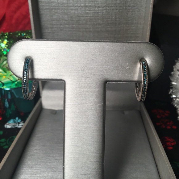 Beautiful Sterling Silver & Blue Diamond Earrings