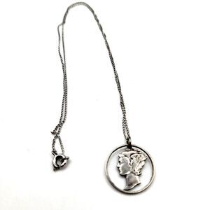 Beautiful Sterling Silver Cutout Coin Pendant Necklace 16in | Materials: sterling silver | Length: 16in | Clasp: spring ring | Signed? sterling | Excellent vintage condition