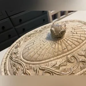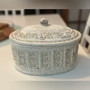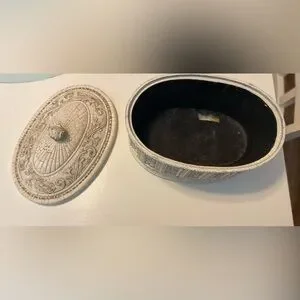 This is in good condition and is really, really beautiful. The inside is felt lined and does have some cracking and holes due to age - see photos.