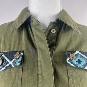Beautiful Stories Anthropologie Inika Olive Green Utility Jacket S Embroidered