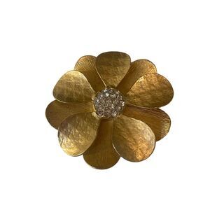Beautiful Substantial Gold Tone & Pave Crystals Flower Pendant.
